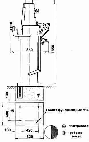 Схема фундамента для заточного станка ТчПА-7