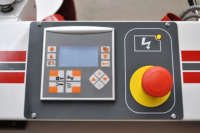 Полировальный агрегат, установленный на кромкооблицовочном станке LANGE MB B85 KFE, работает от двух моторов, мощностью 0,05 кВт, полирует поверхностью со скоростью 1.500 оборотов в минуту. Использование данного агрегата особенно актуально при облицовке кромки АВС и шпоном. Кромкооблицовочный станок LLANGE MB B85 KFE имеет пульт управления с набором кнопок для автоматического снижения температуры клея, включения-выключения агрегатов и сообщения об ошибках в системе.