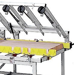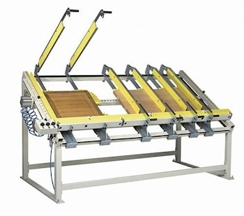 Давление на заготовку при работе на клеильном прессе TABULA происходит со стороны четырех пневматических прессовых балок, которые обеспечивают равномерное прессование по всей ширине детали. Фиксация и зажим заготовок возложены на 4 упора с плавной регулировкой, длиной 600 мм и высотой 100 мм.