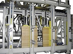 На каждом уровне имеется неподвижный упор по левой стороне и опорная плита снизу. Прессование на станке ROTOR происходит следующим образом: гидравлические прессовые установки передвигаются в любое место рабочей поверхности, т.е. могут устанавливаться в нужной позиции. На каждый сантиметр заготовки приходится давление 5000 кг в зависимости от исполнения пресса.