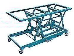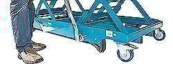 Подъемный стол NIVEAU HS 300 groß имеет стандартную конструкцию, состоящую из пары горизонтальных двойных ножниц, придающих устойчивость, из четырех поворотных колесиков, пара из которых оснащена стояночным тормозом.