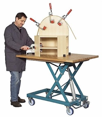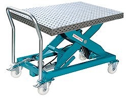 Поднимается рабочая поверхность стола NIVEAU HS 1200 на высоту до 700 мм. Ножной гидравлический насос упрощает подъем столешницы, не зависимо от степени нагрузки. Для выполнения всевозможных задач рабочая поверхность подъемного стола может иметь самый разнообразный вид, представленный на картинках ниже.