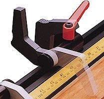 Измерительное приспособление EXAKT F состоит из откидного упора для свободного передвижения заготовки и встроенного зажима для фиксации заданного размера.