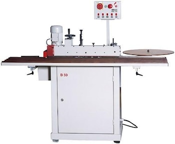 Станок оснащён 13 приводными роликами для лучшего направления подачи заготовки. Толщина кромки регулируется с помощью цифрового счетчика. Отрезка кромки из рулона осуществляется пневматическим способом с помощью ножа. Станок имеет три прижимных ролика. Конвейер подачи мощностью 0,25 кВт и длиной около 1150 мм развивает скорость до 6 метров в минуту.